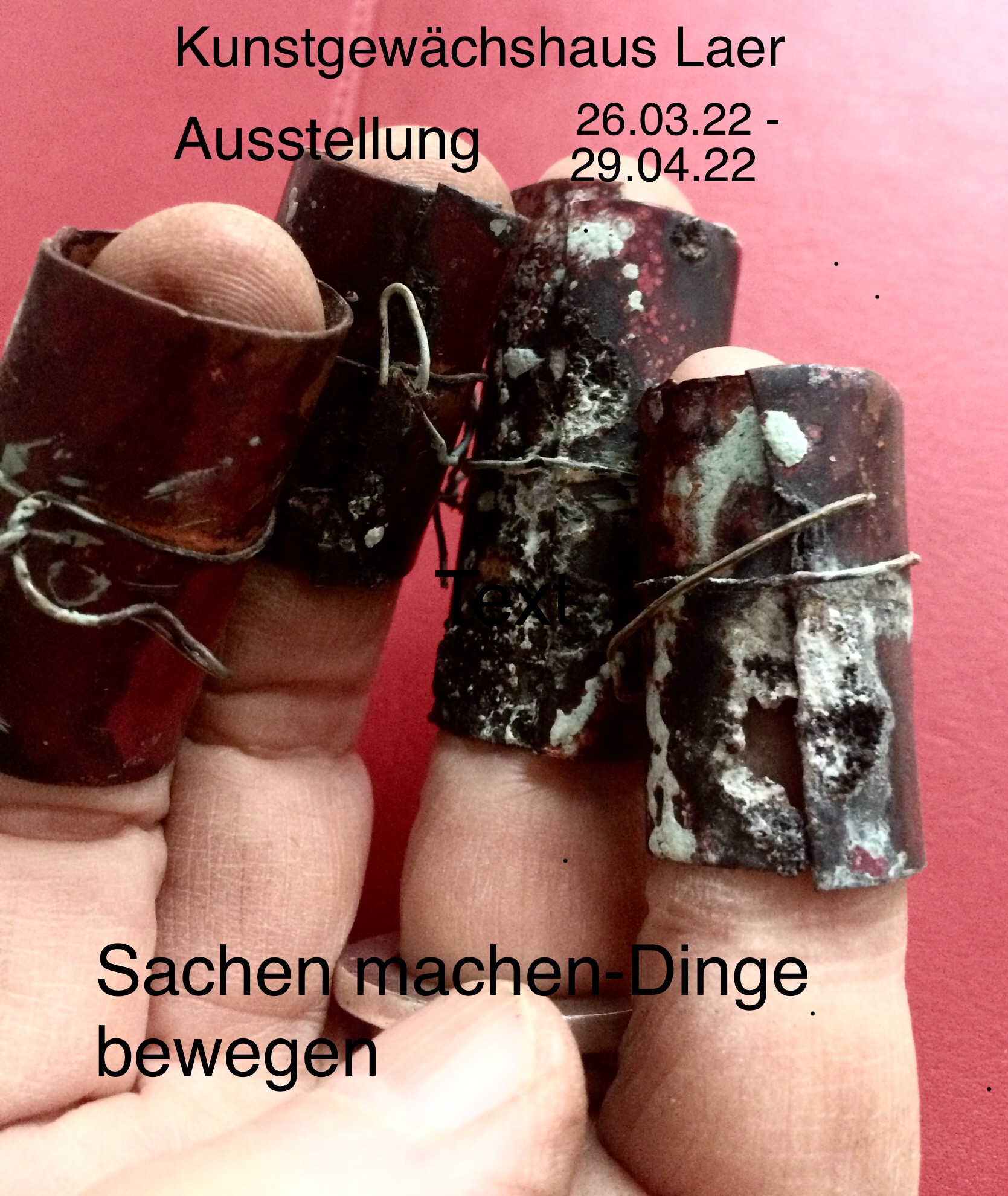 Unter dem Titel „Sachen machen - Dinge bewegen“ zeige ich kleine Teile aus Kupfer, Silber- oder Bronze im Kunstgewächshaus. Oft sind es Broschen oder Ringe oder einfach Stehrümkes.